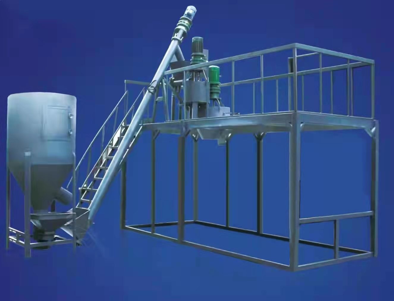 Este sistema cuenta con un diseño racional y alta automatización, reduciendo la mano de obra en 1 a 2 trabajadores en comparación con el equipo estándar, lo que reduce los costos de producción y aumenta la eficiencia de la producción. Dispuesto en una configuración en forma de T, el sistema es compacto e integra una mezcladora automática de polvo húmedo que alimenta emulsión y agua al tanque de mezcla en función de las proporciones de peso predefinidas. Una vez mezclada durante un tiempo determinado, la lechada se libera automáticamente del tanque a un barril de almacenamiento. Después de una mezcla adicional, una válvula operada por el operador dispensa la mezcla sobre el transportador, que la lleva a la máquina de lechada para el recubrimiento de EPS.