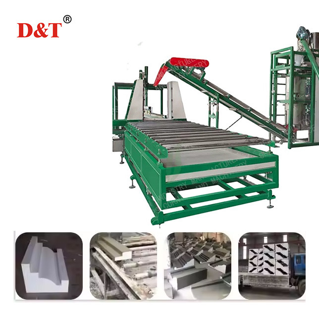 Se utiliza principalmente para aplicar recubrimientos a base de cemento a cornisas de espuma EPS para lograr acabados decorativos, la máquina de recubrimiento EPS (Sistema de recubrimiento de cemento) incluye una mezcladora de mortero de cemento, una cinta transportadora y maquinaria de recubrimiento primario. Los operadores primero aseguran una tela de malla sobre las piezas de EPS moldeadas antes de usar el sistema para aplicar la capa de cemento.
